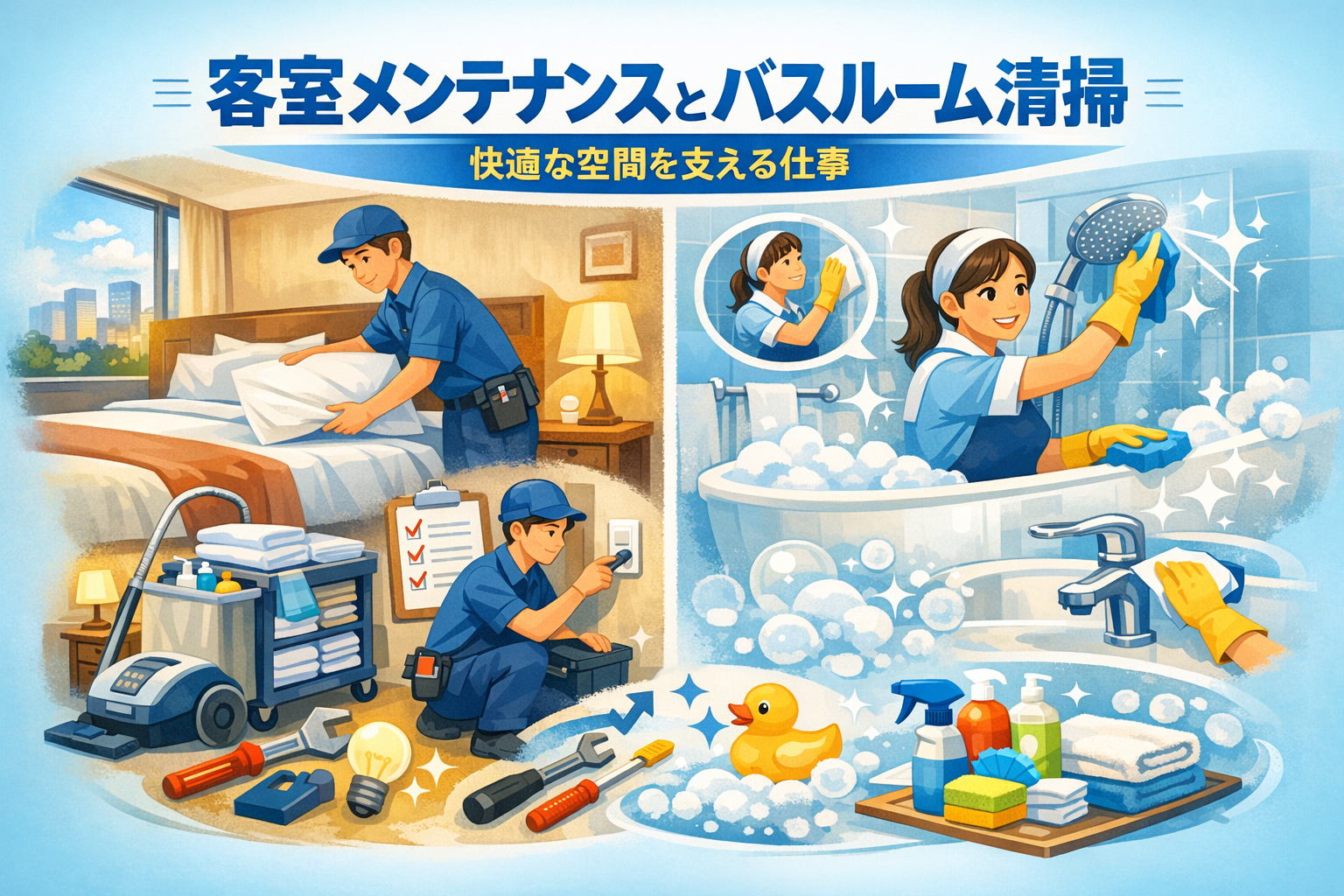 客室メンテナンスとバスルーム清掃 ― 快適な空間を支える仕事